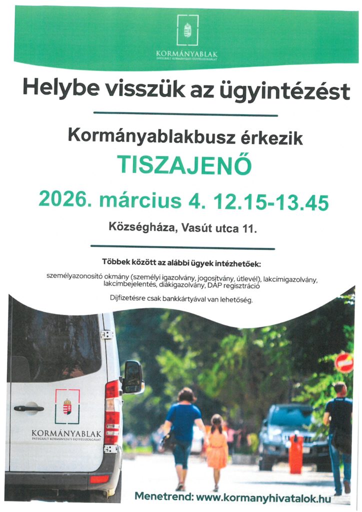 Tájékoztatjuk a Tisztelt Lakosságot, hogy a rendkívüli időjárás miatt szükséges egyes intézkedésekről szóló 2/2026.(I.14.) Korm. rendelet alapján a Kormány döntött arról, hogy a rendkívüli téli időjárásra tekintettel az állami tulajdonú gazdasági társaságoknál lévő tüzelőanyag ingyen a rászoruló családok rendelkezésére bocsátható. Felhívjuk mindazon tiszajenői lakosok figyelmét, akik még élni kívánnak ezzel a lehetőséggel, hogy igényüket legyenek…
